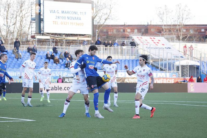 NOVARA – 11-01-2025 --Il Novara sfata il tabù Piola dove non vinceva dal 2 novembre e lo fa con una prestazione convincente, soprattutto nella ripresa. Successo meritato anche se fin troppo largo nelle proporzioni con la gara rimasta in bilico fino a quasi alla fine per merito di Alfonso che ha salvato la propria porta in più di una occasione. Al 2’ è Amadio a salvare quasi sulla linea su angolo di Calcagni. La Virtus Verona si rende pericolosa al 9’ solo per un pasticcio difensiva che per poco non favorisce Amodio. Al 20’ la prima grande parata di Alfonso: vola su una punizione dai 25 metri di Basso, poi sventa due mischie con coraggiose uscite di pugno. Alla mezz’ora Morosini va vicino al gol, Alfonso respinge, la palla viene ripresa Ongaro che di testa manda sulla parte alta della traversa. 5’ dopo arriva il gol del vantaggio. L’azione si sviluppa a sinistra da Agyemang a Calcagni che pennella un cross perfetto per Ongaro che di testa la mette in rete. Azione individuale di Zarpellon al 38’, entra in area e calcia: palla fuori di poco.