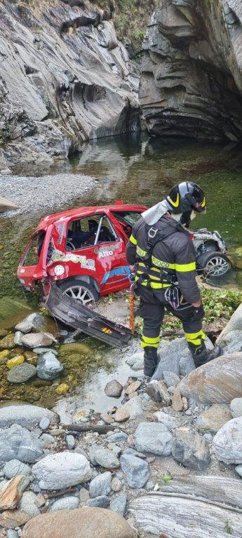 Un’autovettura, uscita di strada nelle vicinanze dello svincolo per raggiungere l’abitato di Spoccia, si è schiantata contro il guard-rail. L’equipaggio, illeso, è subito sceso dal veicolo. Subito dopo un’altra autovettura in gara è uscita di strada nello stesso punto, tamponando il veicolo bloccato nel guard-rail. Entrambe le auto sono precipitate nell'alveo del torrente Cannobino, sottostante trenta metri la strada provinciale (SP 75). Illesi gli equipaggi. Intervenuta anche l’autogrù del Comando per il recupero.