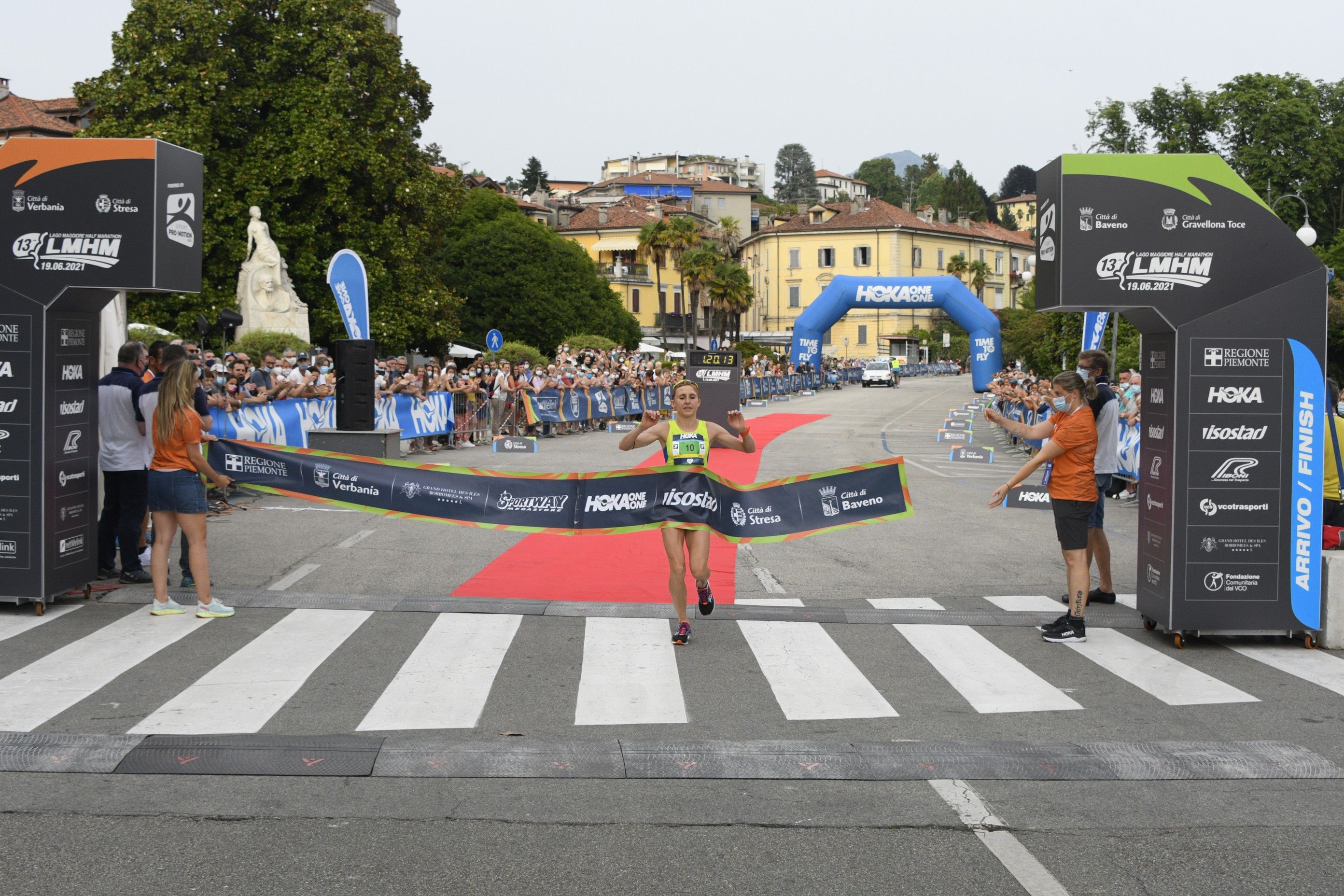 VERBANIA - 20-06-2021 -- È vissuta su testa a testa svizzero-norvegese, risolto a favore del rossocrociato Julien Wanders, l’edizoine 2021 della Lago Maggiore Half Marathon. Annullata nel 2020, spostata di calendario -e d’orario-, la “mezza” sul percorso più panoramico d’Italia s’è chiusa all’ora di cena a Pallanza. Il primo a tagliare il traguardo, con il tempo 1h02’42”, è stata Wanders, che ha lasciato indietro, con un distacco di 18”, il norvegese Sondre Moen. Terzo il keniano Matthew Kibarus con il crono di 1h07’52”. Il primo italiano al traguardo è stato il torinese Alessio D’Alessandro, che s’è così aggiudicato il trofeo alla memoria di Aldo Sassi e Paola Pizzi. Va invece ad Alessandro Lacqua della società Sport Ptoject il trofeo che porta il nome del compianto Davide Bolognini che, sostenuto dall’Atletica Avis Ossolana, era destinato al primo podista del Vco.
